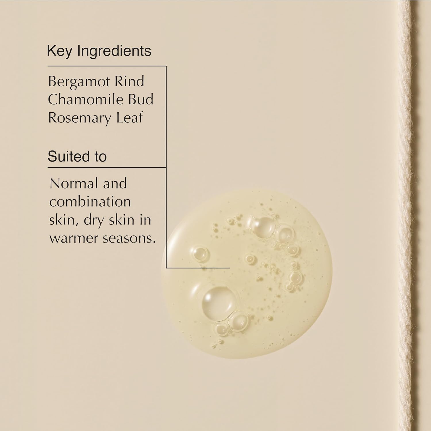 • Suited To: Normal and combination skin. dry skin in warmer seasons.